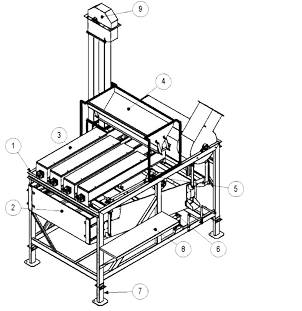 El segundo gusano (retorno de aserrín) envía el aserrín hacia el elevador. Este elevador recibe por un lado el aserrín y por otro la semilla a procesarse.